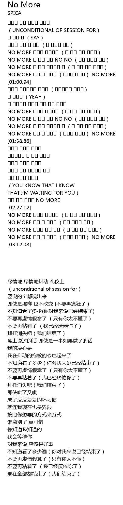 | [03:02.43] | NO MORE 이젠 다 끝났어 (우리는 끝났어) NO MORE |