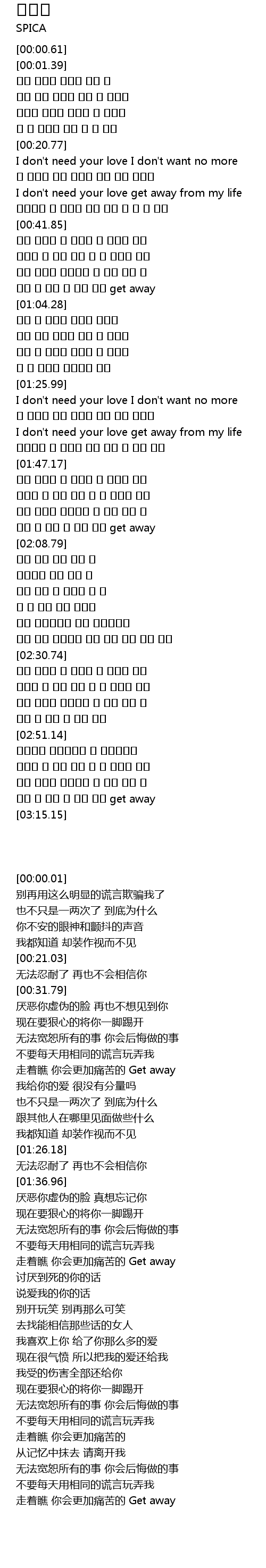 | [01:31.62] | 더 이상은 참지 않겠어 너를 믿지 않겠어 |