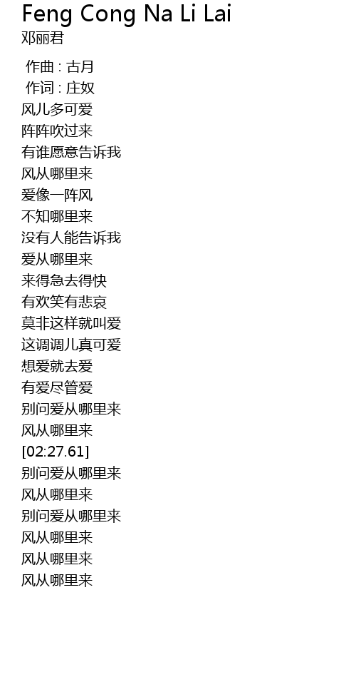 | [03:00.90] | 风从哪里来 |