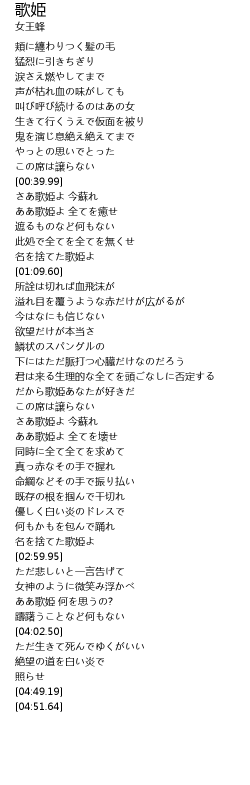| [00:59.95] | 名を捨てた歌姫よ |