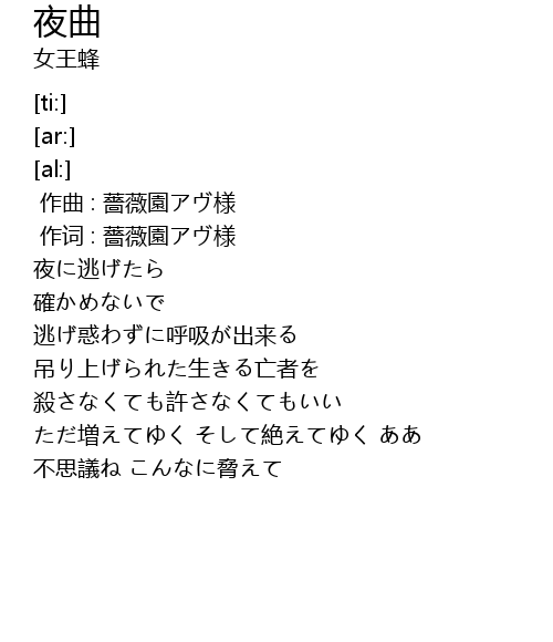| [00:01.00] | 作词 : 薔薇園アヴ様 |