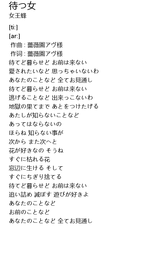 | [00:01.00] | 作词 : 薔薇園アヴ様 |