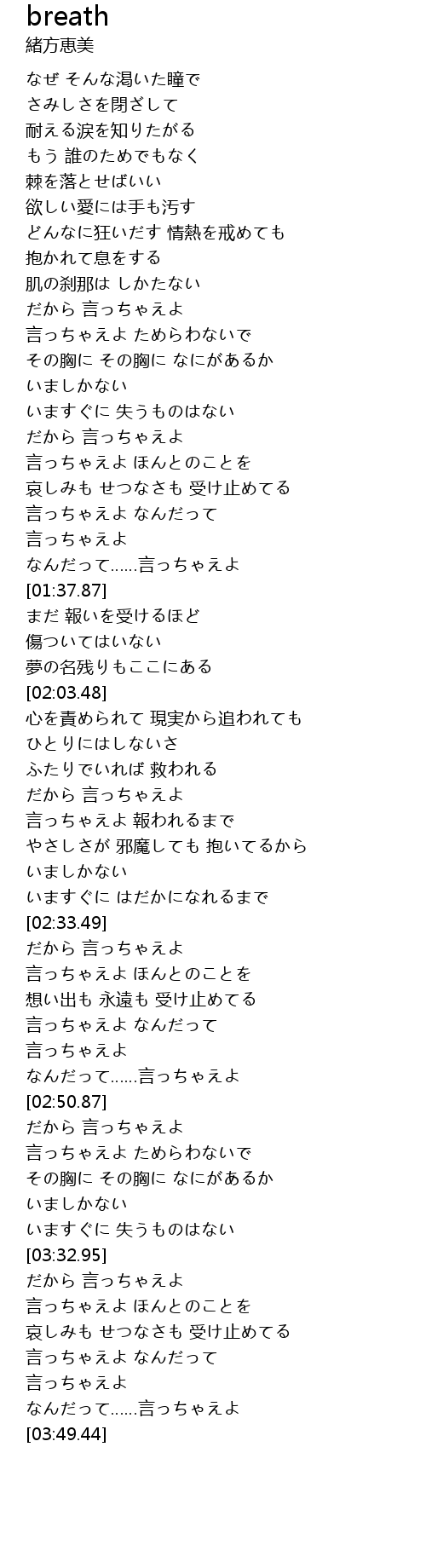 | [00:59.81] | 抱かれて息をする |