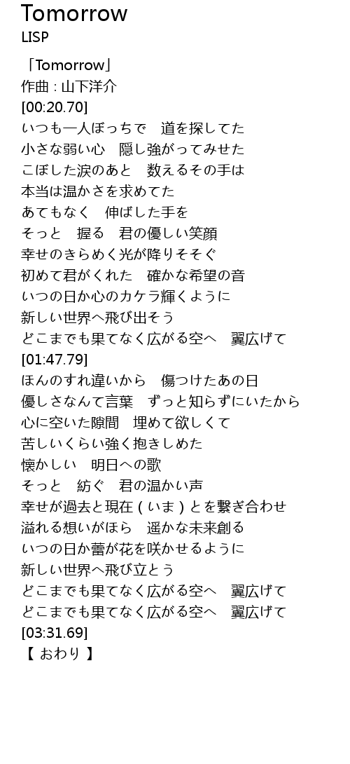 | [00:01.70] | 「Tomorrow」 |