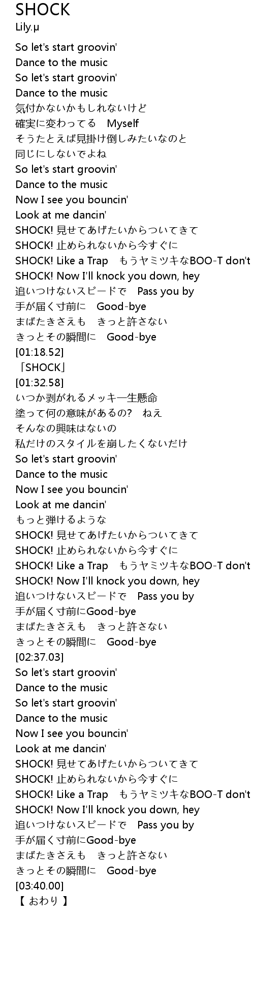 | [01:21.58] | 「SHOCK」 |