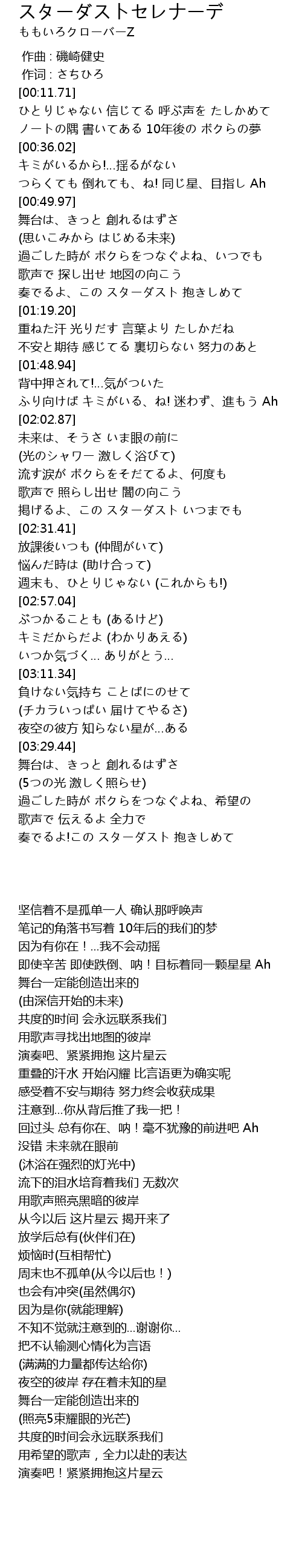 | [03:53.52] | 奏でるよ!この スターダスト 抱きしめて |