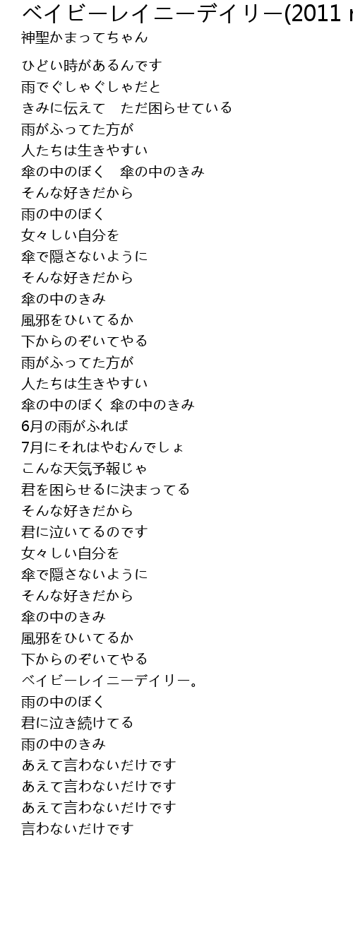 | [02:22.333] | ベイビーレイニーデイリー。 |