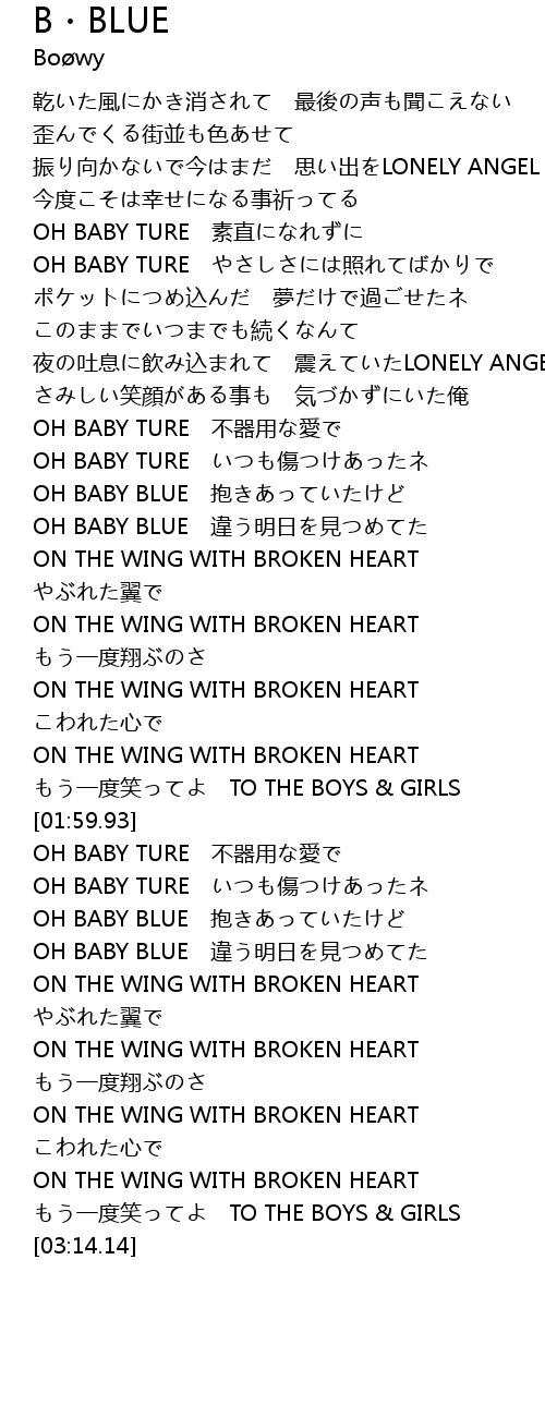 | [02:35.24] | OH BABY BLUE 抱きあっていたけど |