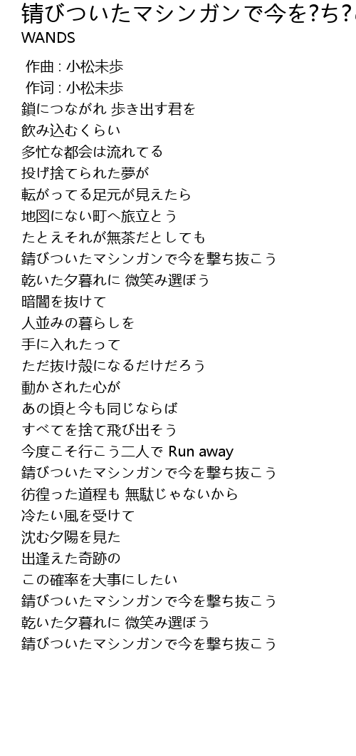 | [03:55.840] | 錆びついたマシンガンで今を撃ち抜こう |
