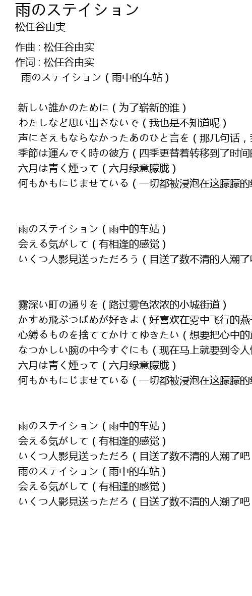 | 歌曲 | 雨のステイション |