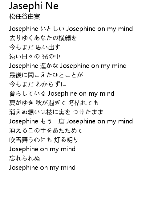 | [00:15.060] | Josephine いとしい Josephine on my mind |