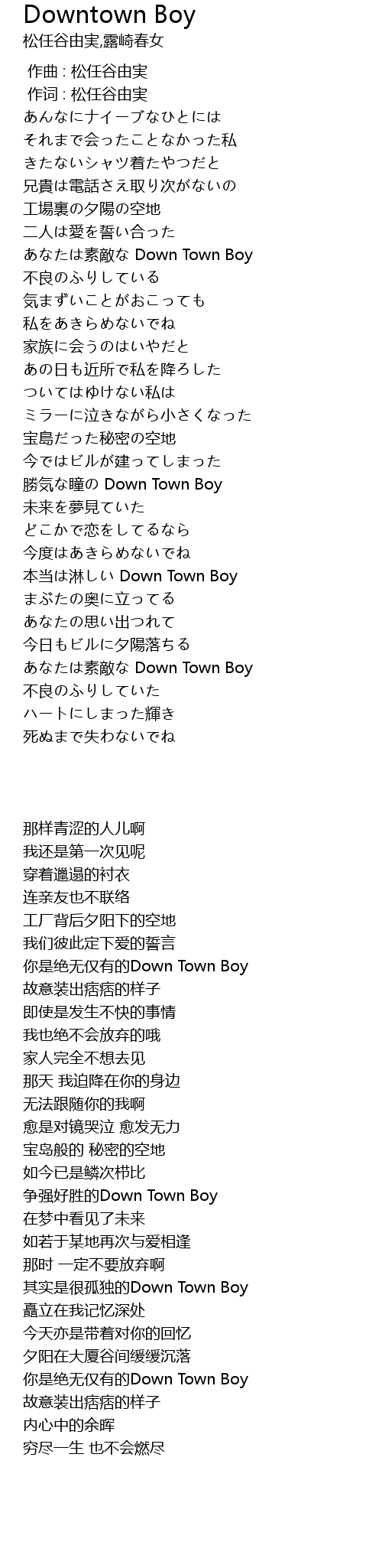 | [04:01.50] | 其实是很孤独的Down Town Boy |