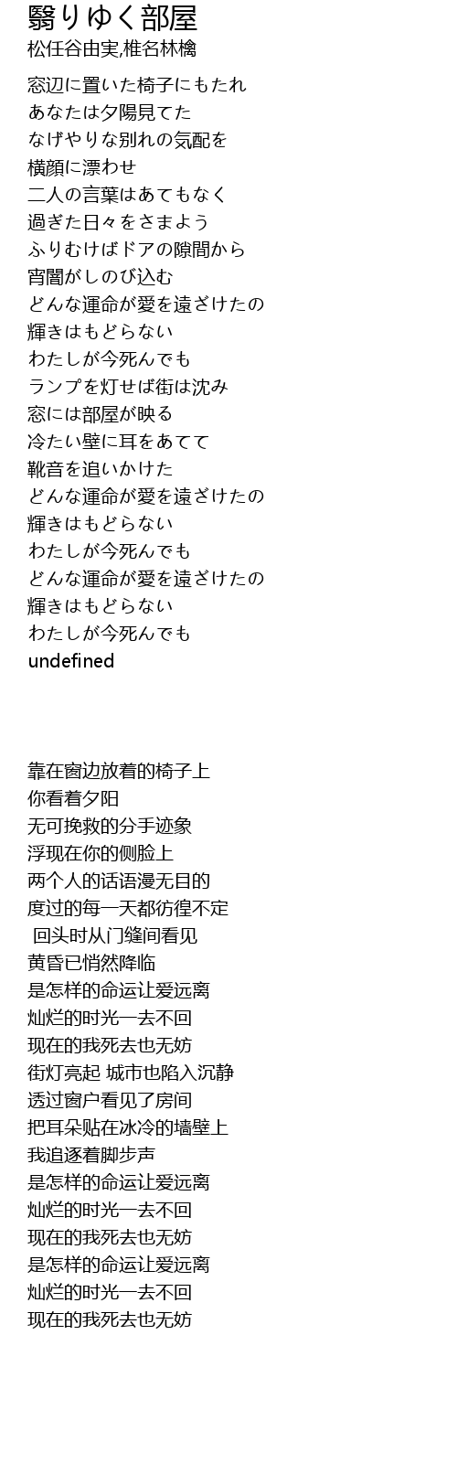 | [00:01.93] | 窓辺に置いた椅子にもたれ |