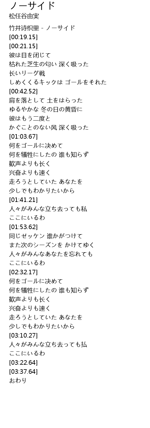 | [00:00.00] | 竹井诗织里 - ノーサイド |