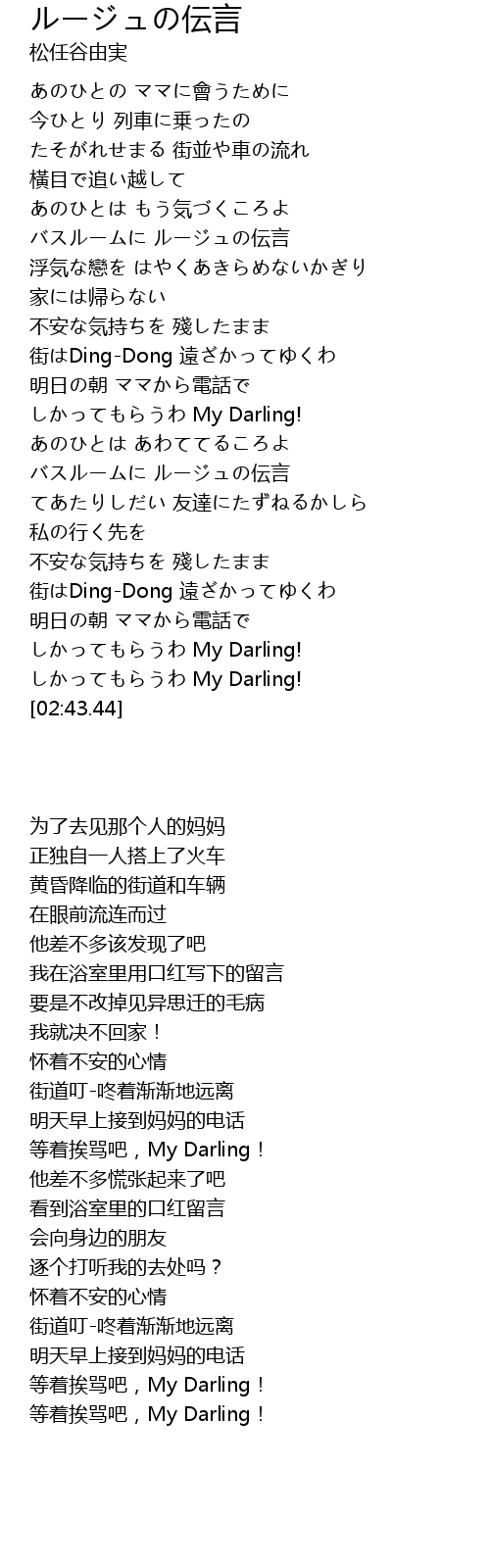 | [00:50.41] | バスルームに ルージュの伝言 |