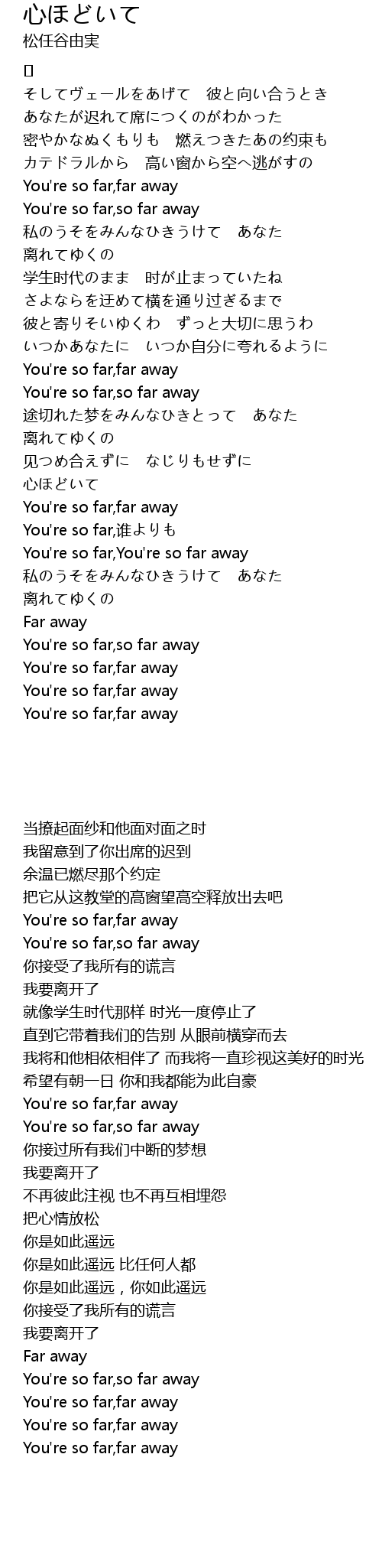 | [03:12.13] | 你是如此遥远 比任何人都 |