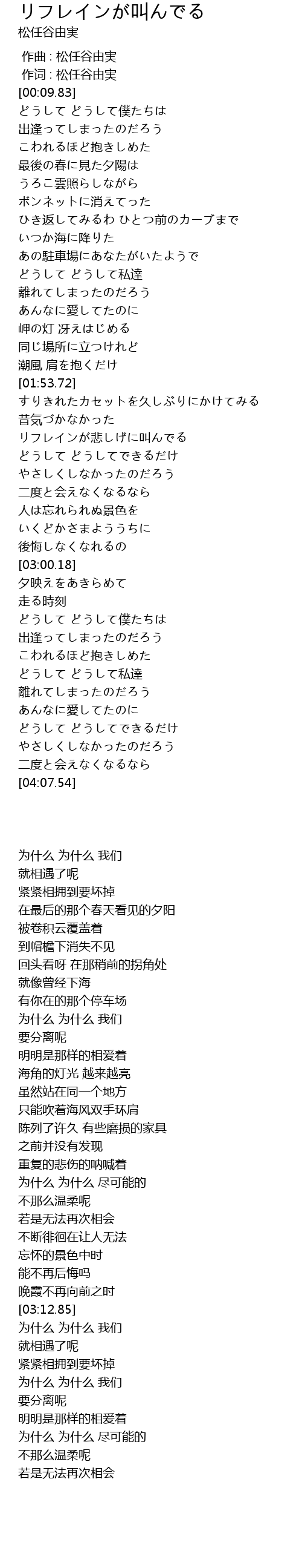 | [00:01.00] | 作词 : 松任谷由実 |