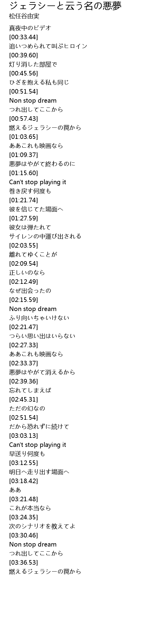 | [03:31.88] | Non stop dream |