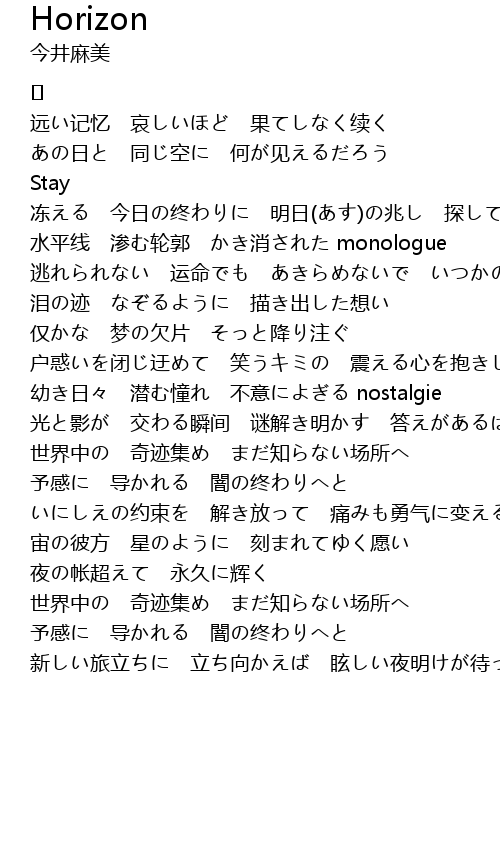 | Stay 冻える 今日の终わりに 明日(あす)の兆し 探していた | |