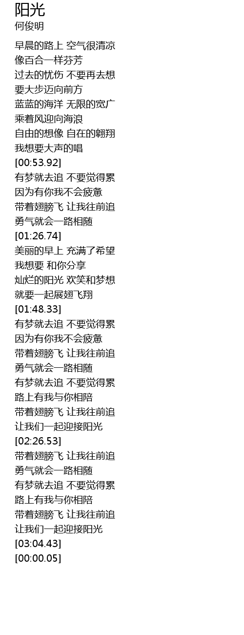 | [01:36.70] | 灿烂的阳光 欢笑和梦想 |