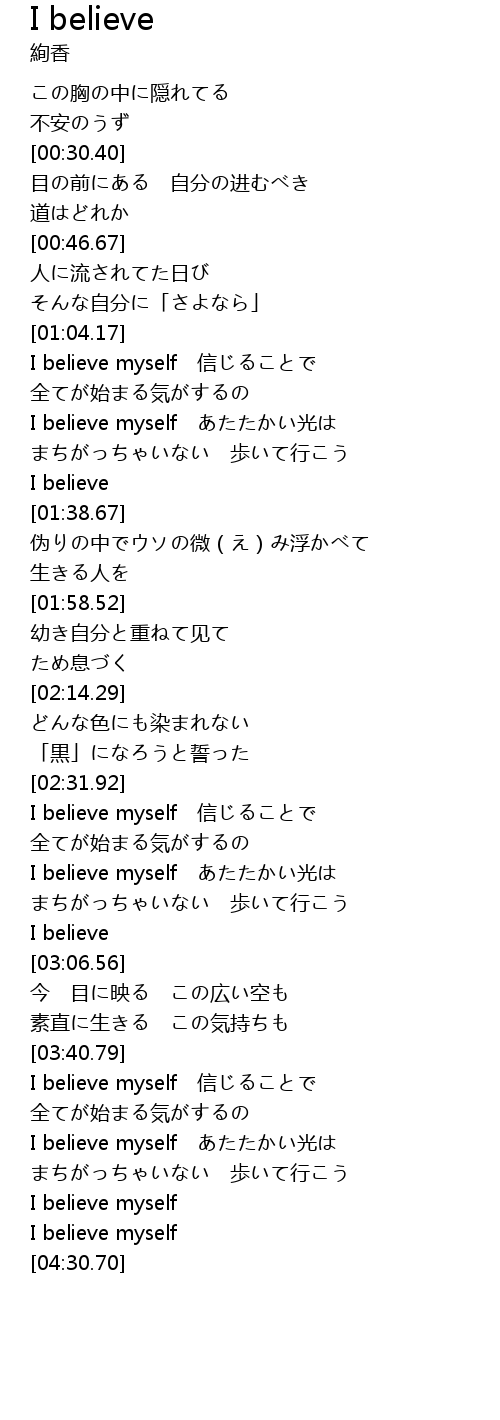 | [03:43.13] | I believe myself xìn |