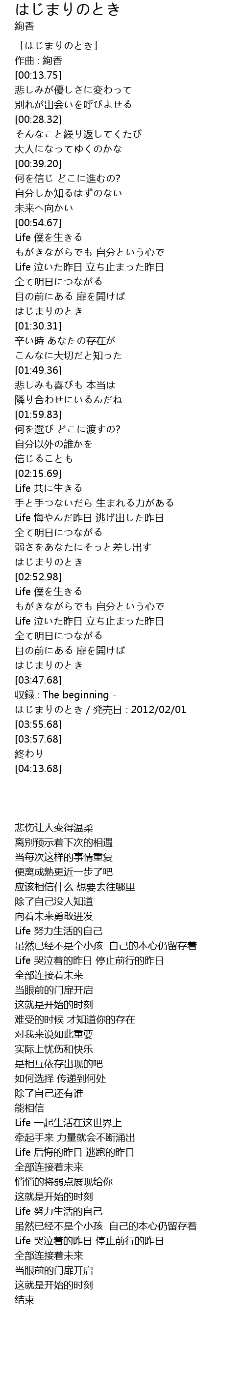| [03:50.68] | shōu lù The beginning fā mài rì 2012 02 01 |
