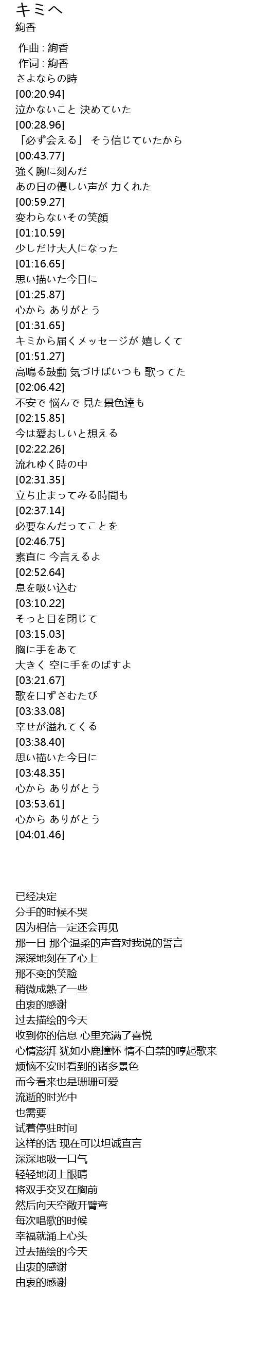 | [03:49.54] | 心から ありがとう |