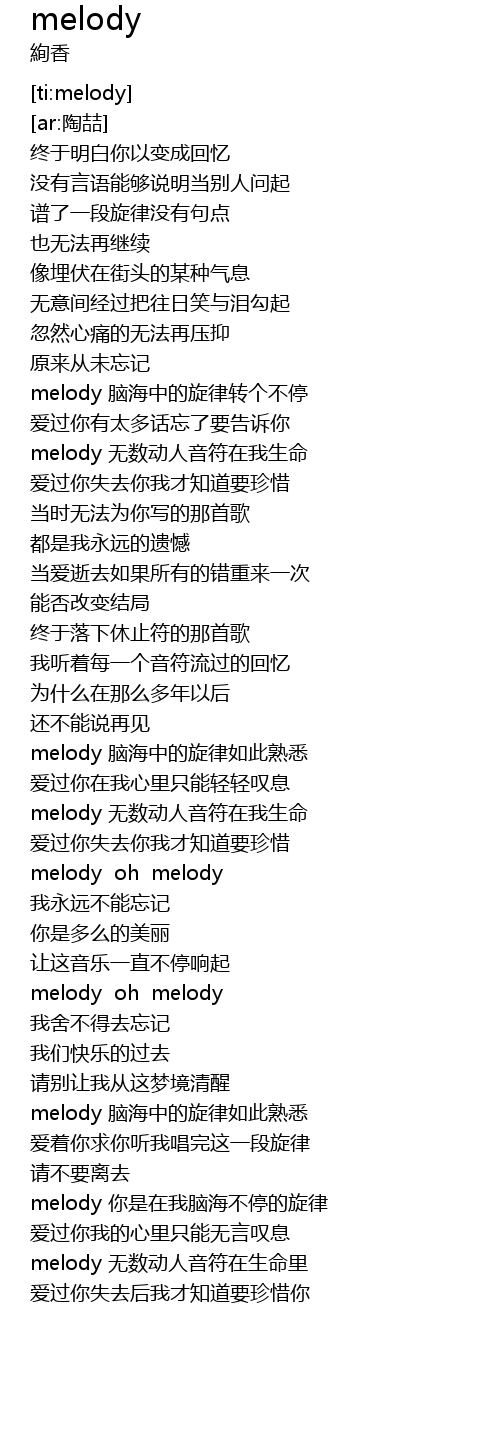 | [04:04.791] | melody 你是在我脑海不停的旋律 |