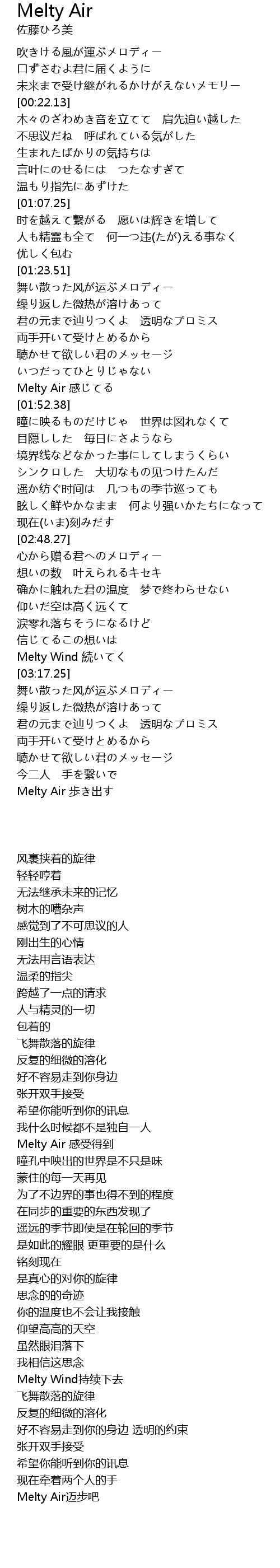 | [03:13.68] | Melty Wind持续下去 |