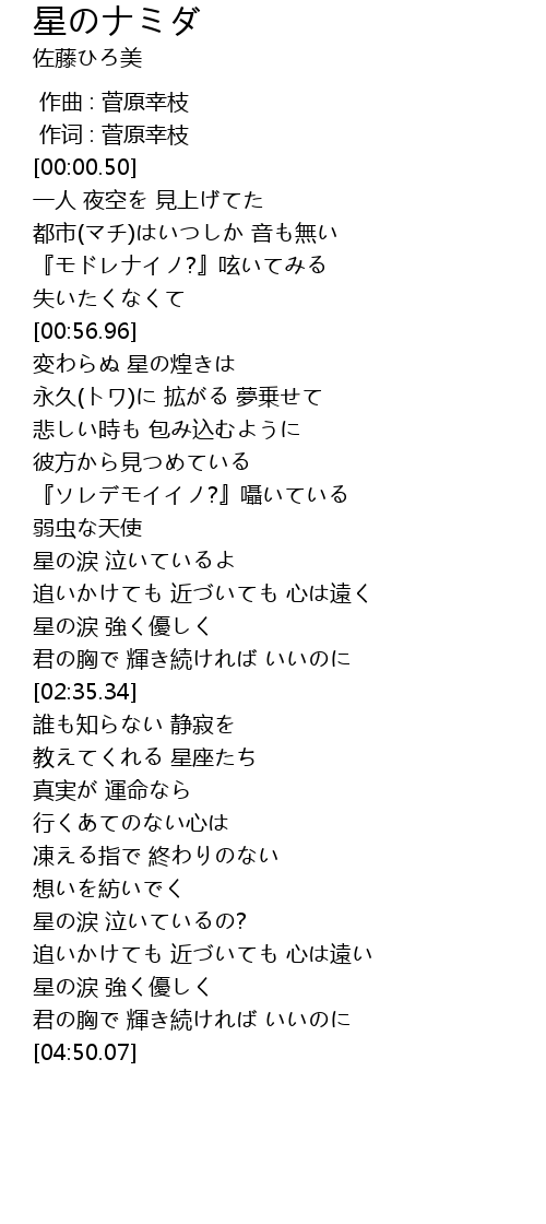 | [00:59.92] | 変わらぬ 星の煌きは |