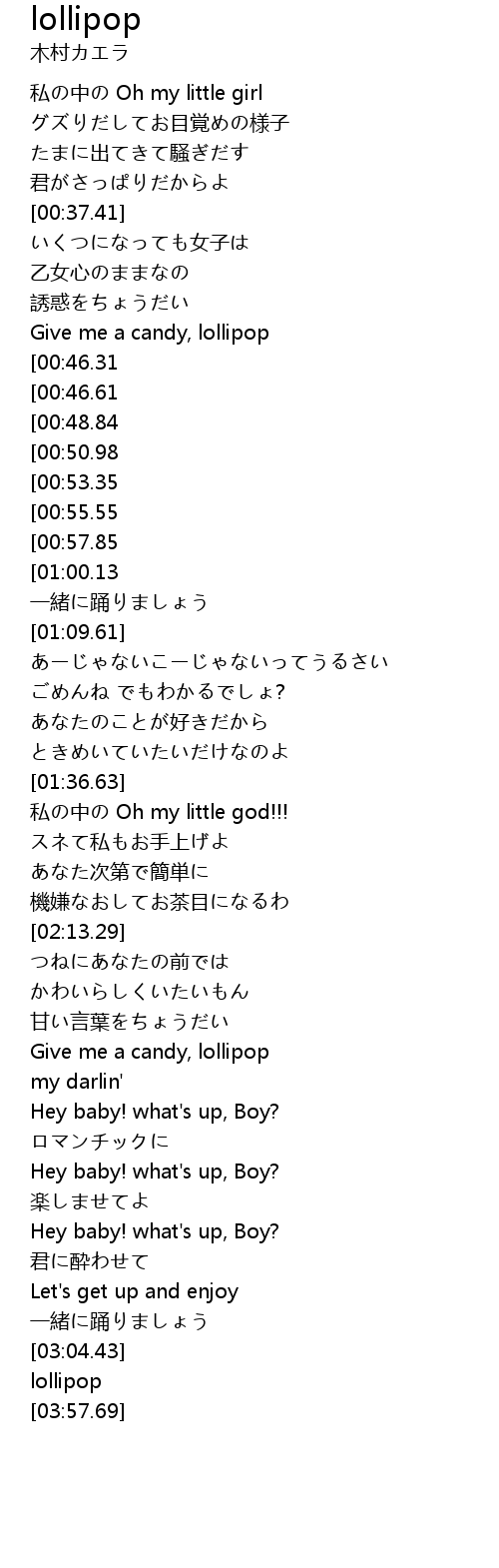 | [02:22.64][00:46.61] | Hey baby! what' s up, Boy? |