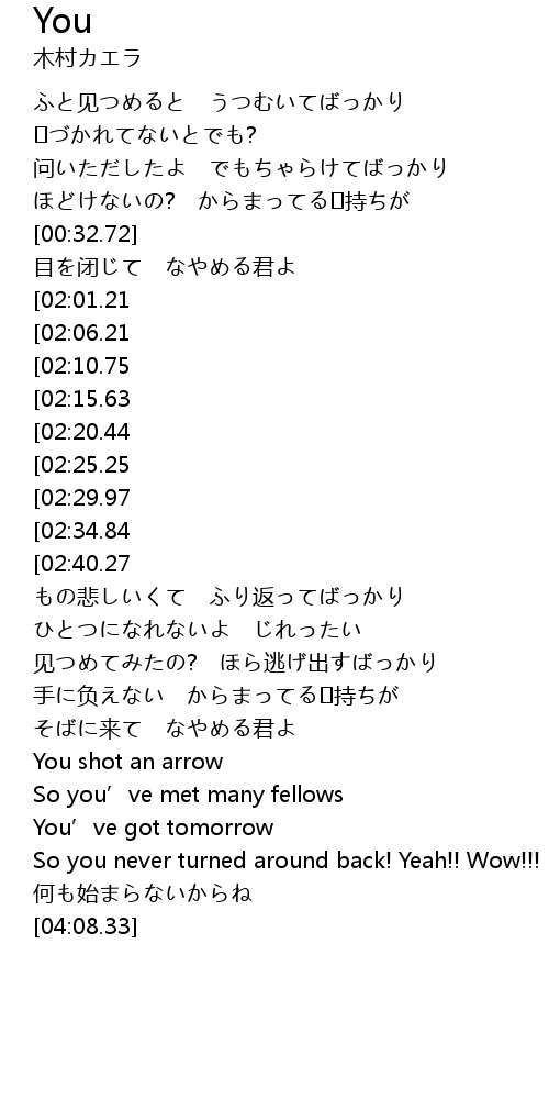 [03:48.02][02:29.97][01:12.59] こらえちゃいけないんだ YOU