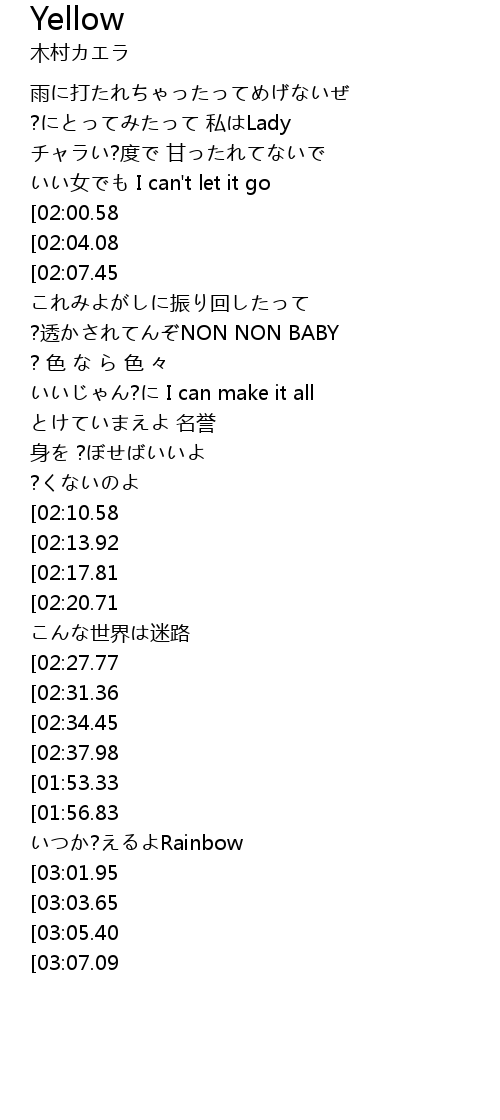 | [00:55.18][02:10.58] | Yellow |