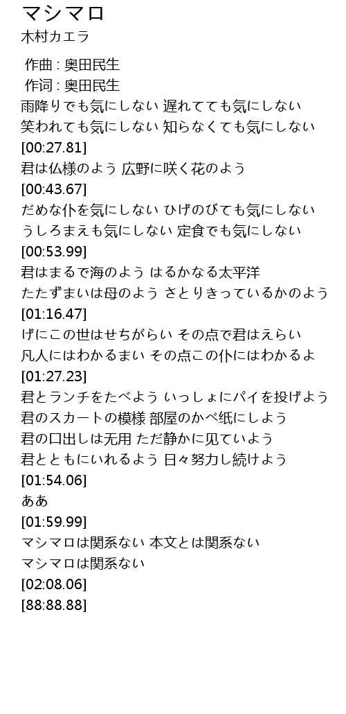 | [02:00.39] | マシマロは関系ない 本文とは関系ない |