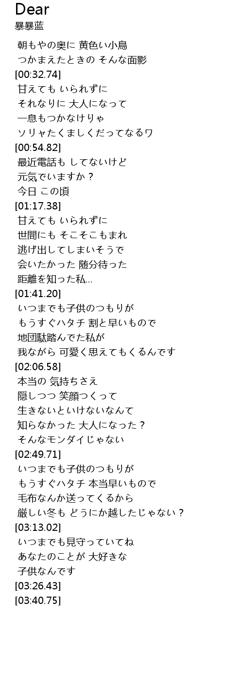 | [02:56.40] | もうすぐハタチ 本当早いもので |