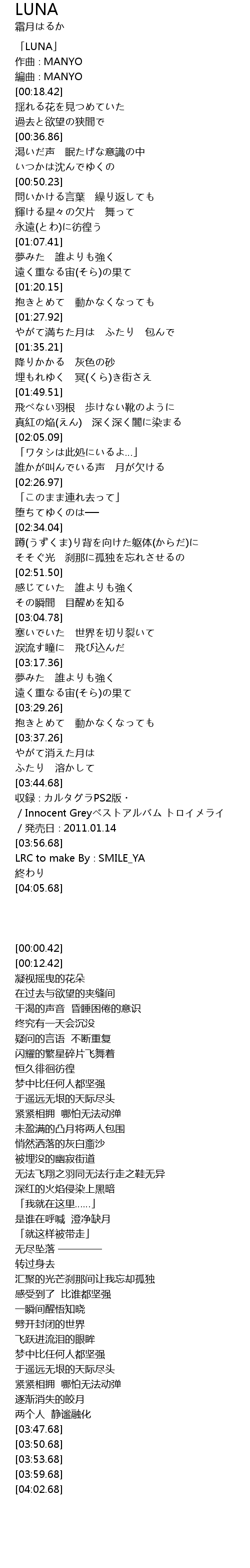 | [03:59.68] | LRC to make By∶SMILE_YA |
