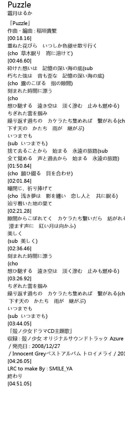 | [00:01.16] | 「Puzzle」 |