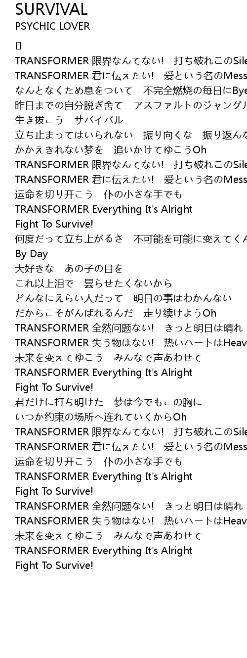 | TRANSFORMER 限界なんてない! 打ち破れこのSilence | |