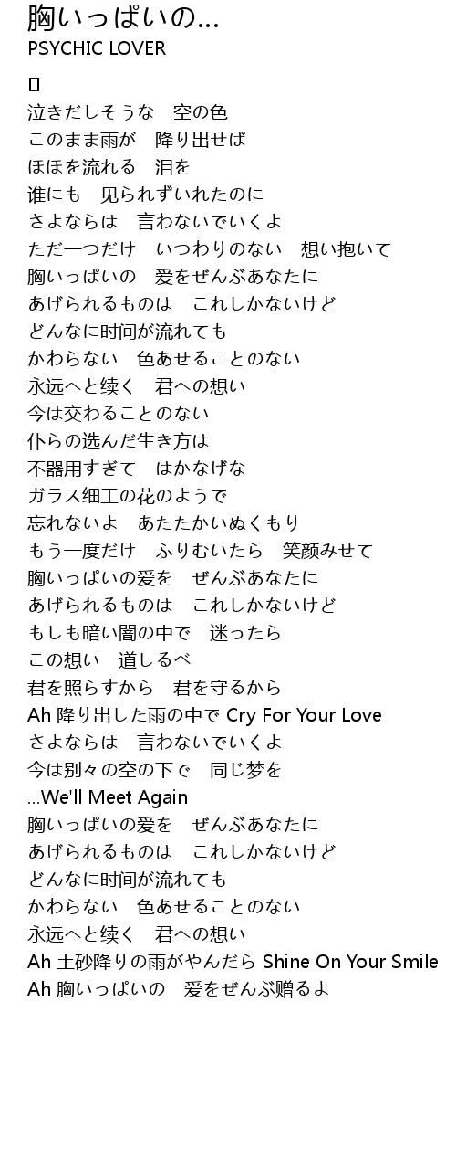 | Ah 胸いっぱいの 爱をぜんぶ赠るよ |