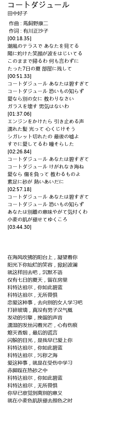 | [02:59.57] | コートダジュール あなたは碧すぎて |