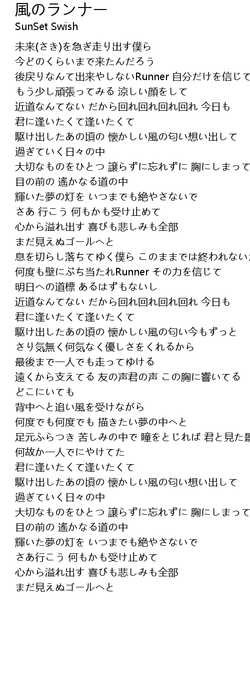 | 駆け出したあの頃の 懐かしい風の匂い想い出して | |