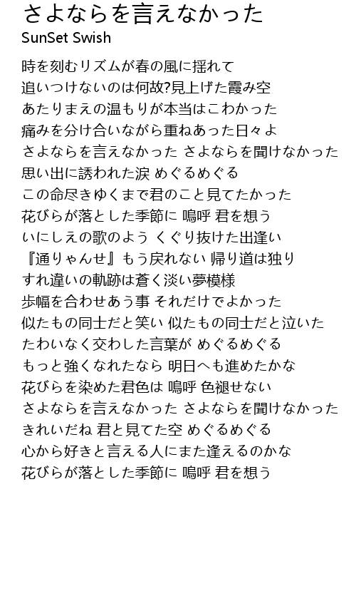 | 花びらが落とした季節に 嗚呼 君を想う | |