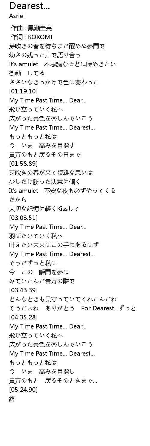 | [04:23.98] | そうだよね ありがとう For Dearest...ずっと |