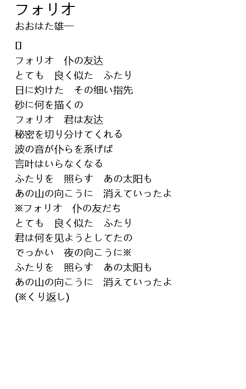 | 歌曲 | フォリオ |