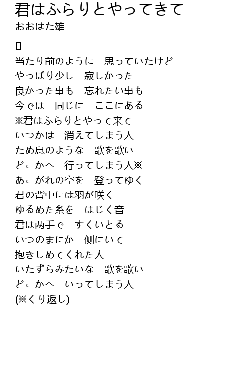 | 歌曲 | 君はふらりとやってきて |