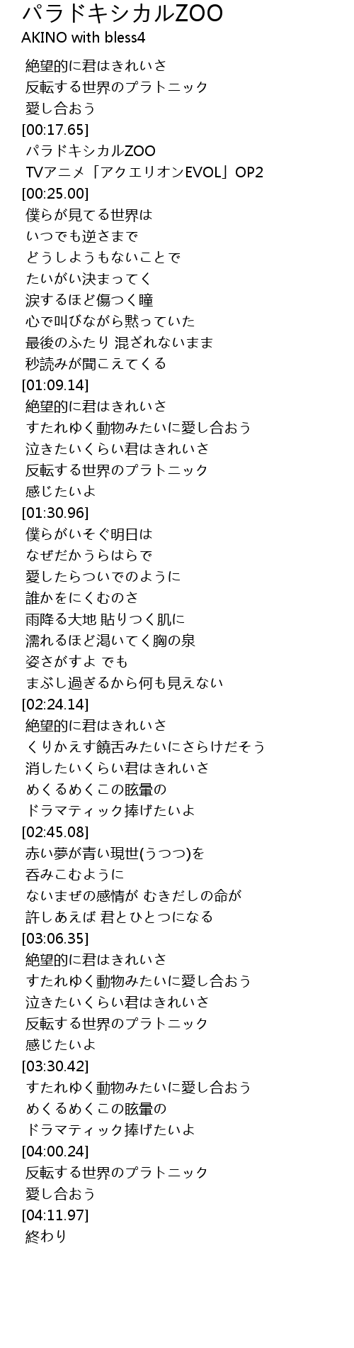 | [00:20.00] | TVアニメ「アクエリオンEVOL」OP2 |
