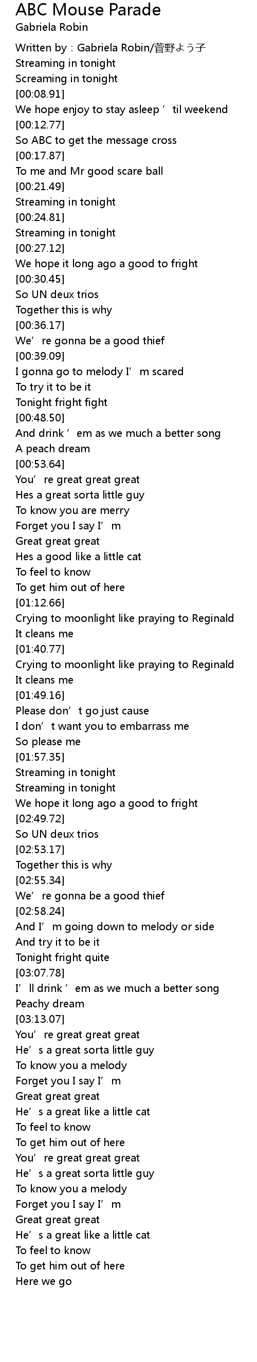 | [00:02.49] | Written by: Gabriela Robin jian ye zi |