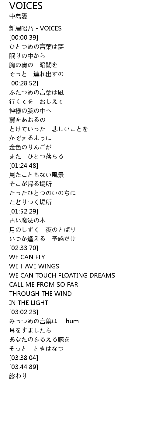 | [02:40.65] | WE CAN TOUCH FLOATING DREAMS |