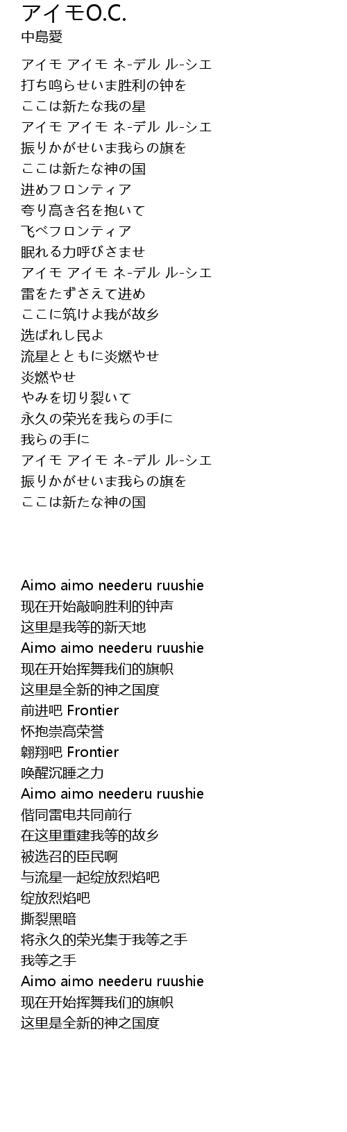 | 歌曲 | アイモO.C. |