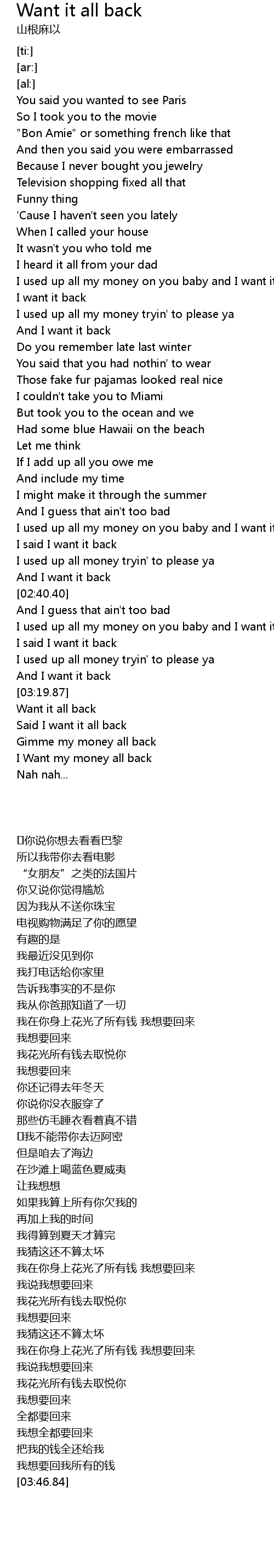 Said I want it all back |